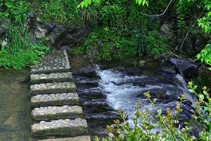 搁船尖蓝色瀑布群:明教总舵 大光明顶搁船尖环线,搁船尖在清凉峰的南面,是天目山脉的余脉,白际山脉最高峰。是《倚天屠龙记》现实中的光明顶本顶。路线较为简单休闲。这里有壮观的喀斯特地貌,神奇的石门和蓝色的瀑布。道教的第36福地,世界上唯一仅存的摩尼教明教总坛遗址,华东最后的山越秘境。到了瀑布脚下,就会明白半小时的山路颠簸值得!