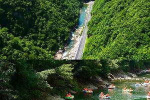 各种巨石散布其中,火山遗迹清晰可见途经20 多处滩、30多道湾、40个滑道峰回路转、有惊无险,每一次的冲浪与回旋都让你尽情释放内心的压力水中的凉意、激流的冲击