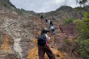 有别于其余苏州爬山路线全程爬升300米没有一个台阶全部靠钉子、山体、麻绳着力上升中间有一段接近垂直攀岩