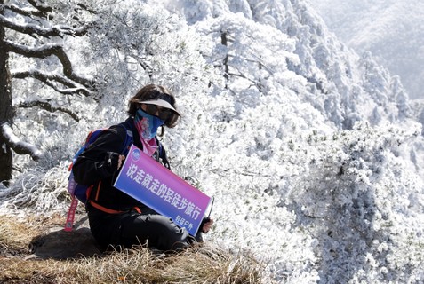 本次我们选取小众新手路线龙王山对面的桐杭岗,开车直达海拔1100m后,轻徒步6km赏冰雪世界。