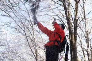 北风吹来,万树银花雪后的龙王山是浪漫的雪花漫天卷地落下来