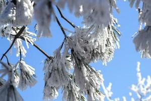 雾凇,由空气中饱和的水遇冷凝华行程结晶附着在树木物体上 宛如琼树银花,清秀雅致