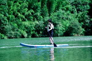 • 17.00左右:结束漂流后,乘着已经湿透,一起前往引龙峡水上运动俱乐部,不怕水的伙伴和领队一同玩桨板,怕水的伙伴皮划艇悠然见蓝天白云,记得带上分发的能量包,水上运动锻炼时会消耗热量哟。
