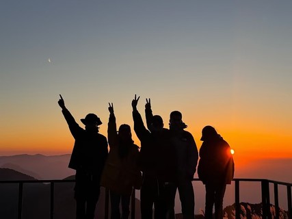 ③14.00-16.00 休息片刻,一同驱车30分钟前往浙江太子尖驿站,爬升30分钟,登顶太子尖1588m海拔,观美丽日落。(带厚冲锋衣山顶温度低);
