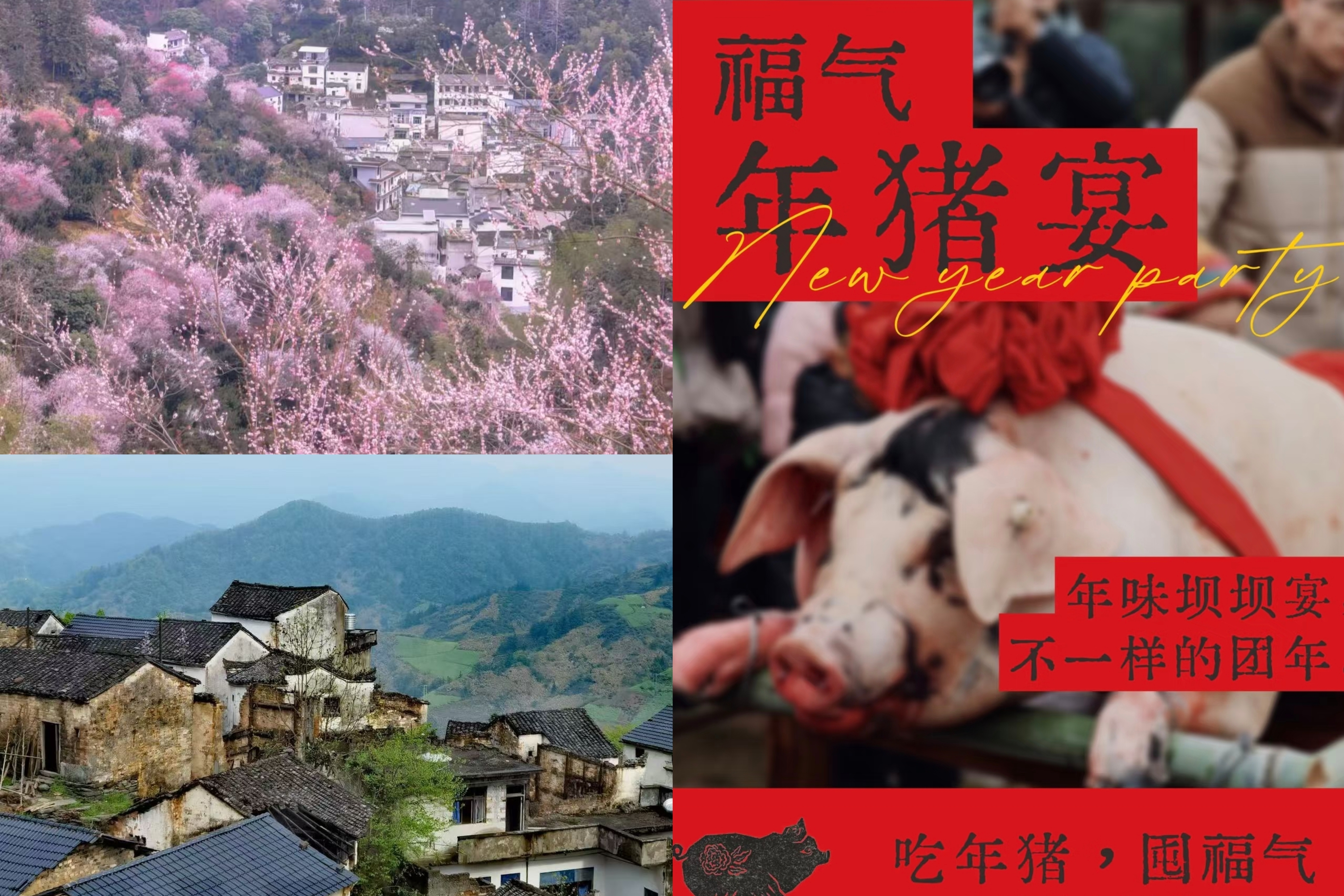 3.农家杀猪宴深度参与:亲手协助农家按猪脚、筹备年猪宴,近距离感受徽州传统年俗,品尝地道黑毛跑山猪盛宴,肉质鲜香原生态,更可预约购买新鲜猪肉,将年味带回家。