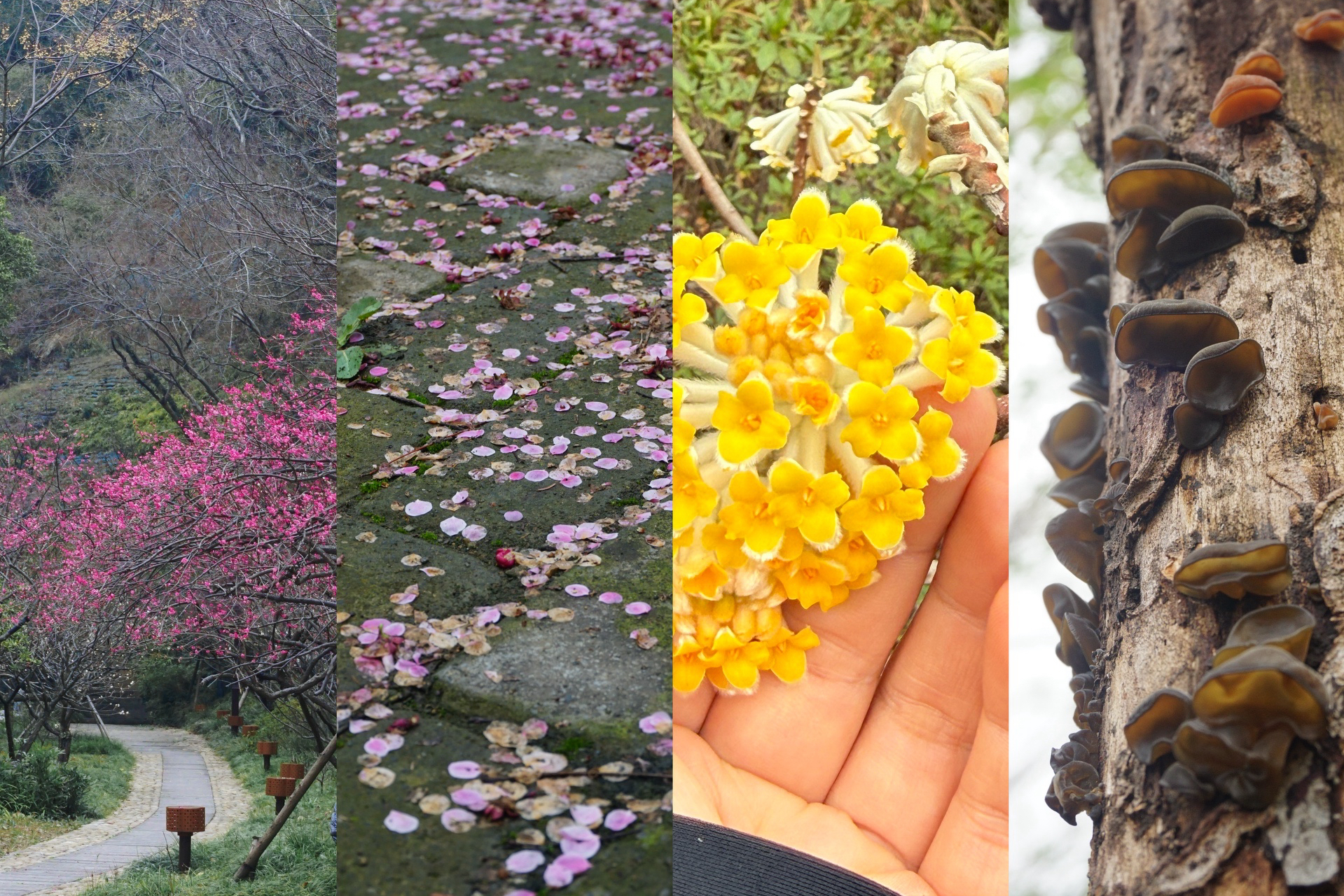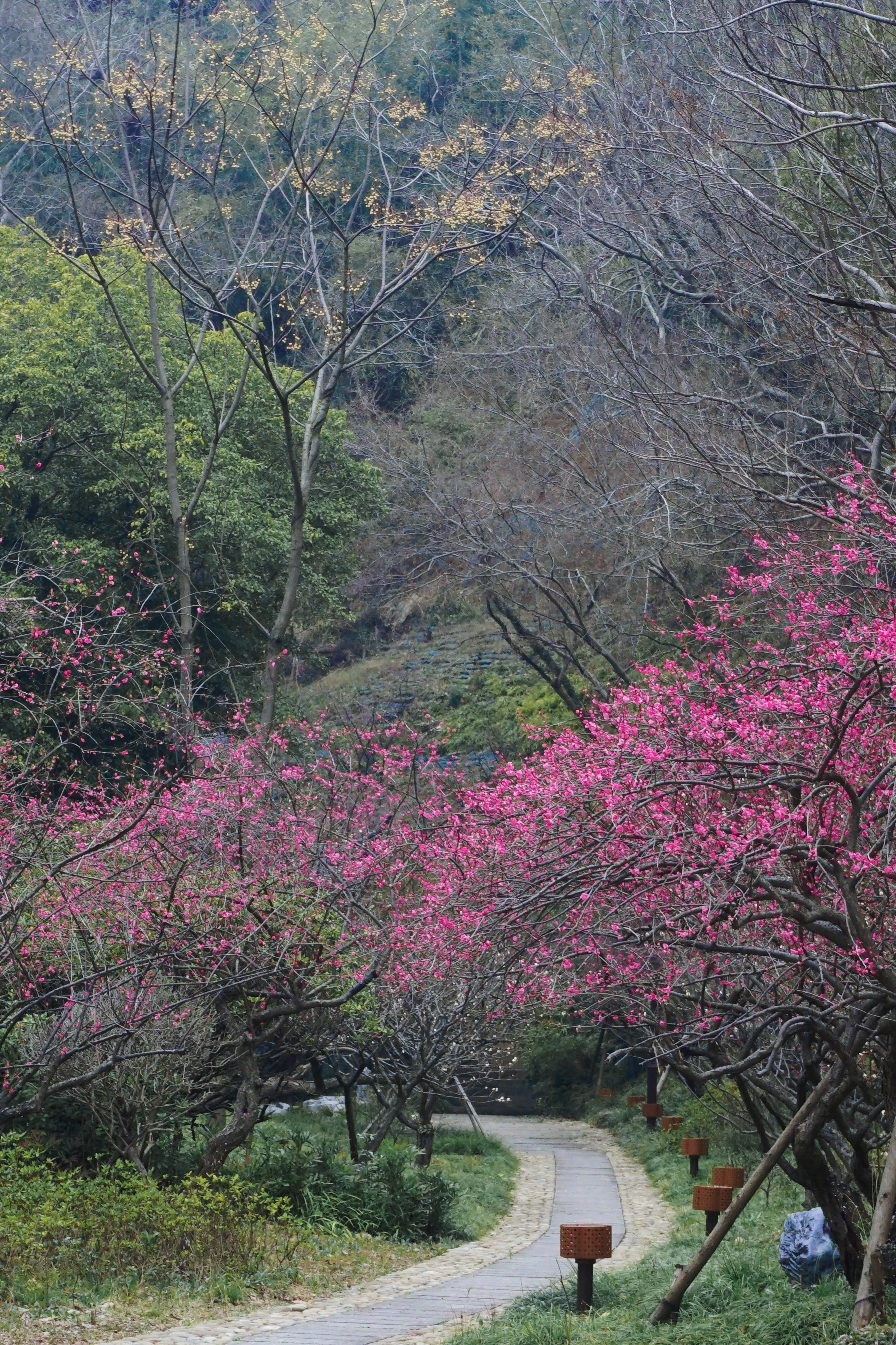 2.沿途依次经过梅花、茶花、油菜花三重花海,粉白嫣红与金黄田垄层层叠叠,花香随行,满目绚烂,是浙北春季最出片的徒步线之一。步道穿行于山林与田园之间,绿意葱茏、空气清新,人少清静,远离景区喧嚣,自带小众秘境气质。