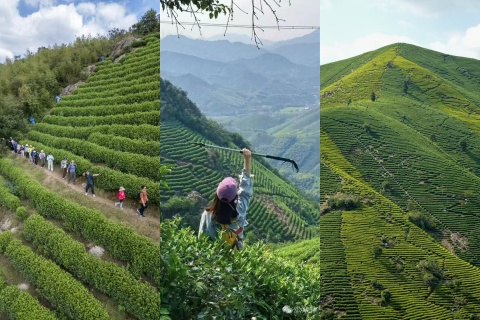 6. 春日茶香弥漫四溢,沉浸式品茗:沿途经过原生态茶田,清风裹挟着淡淡茶香,可近距离观赏采茶风貌,偶遇当地茶农,感受地道湖州茶文化,闻香识茶氛围感直接拉满。